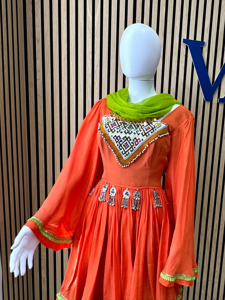 Each dress is handcrafted by skilled Afghan artisans. The embroidery, mirror work, and tribal patterns show the rich heritage of Afghan nomadic culture. Every dress tells a story of tradition and artistry.